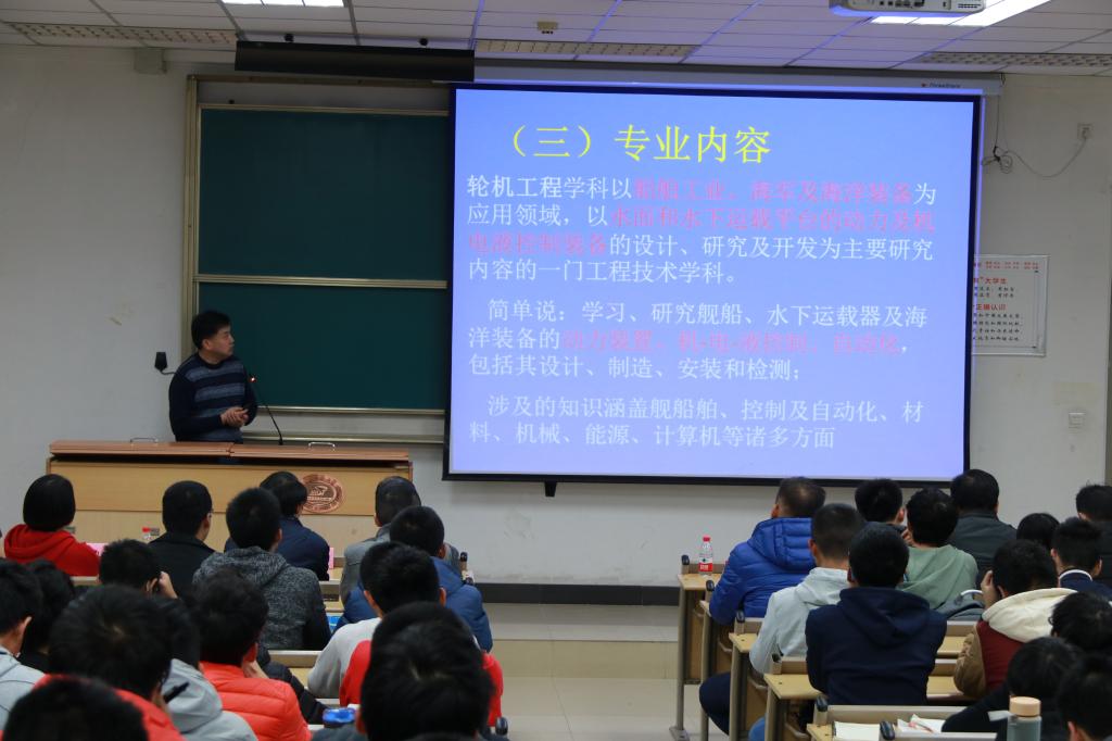 为使2018级本科生进一步了解轮机工程专业,明确今后的发展方向,565net必赢客户端于11月18日晚在东九B102教室开展了轮机系专业教育讲座。此次讲座由学院副院长李维嘉教授、轮机系主任徐国华教授,刘炎副研究员,程一伟博士四位嘉宾主讲。